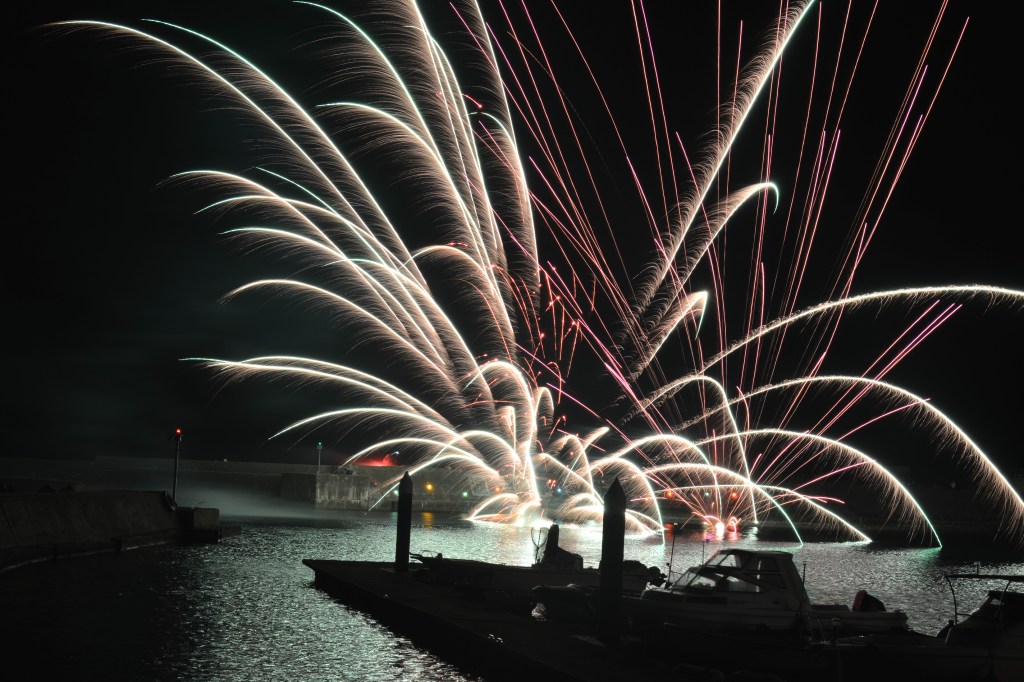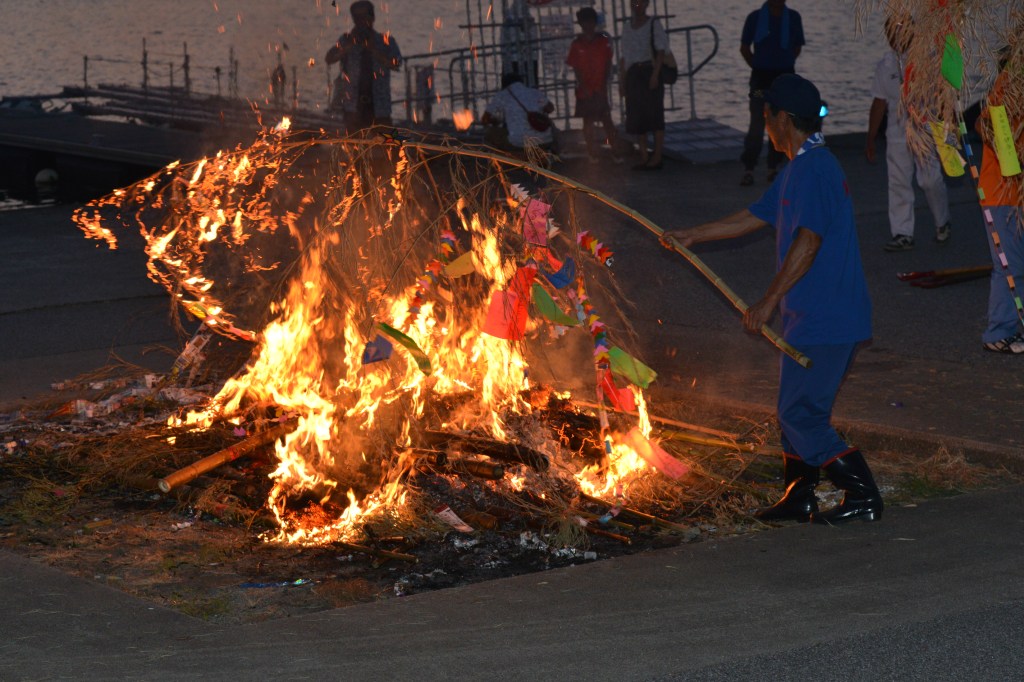 花火や、ステージイベント、盆踊りなどの催しが行われます。 催しの途中、海難事故等で亡くなったかたの合同追悼式があり、灯籠流しも行われます。 七夕飾りが集められて燃やされる様子は、さながら七夕の左義長のようです。 経田七夕まつりは毎年8月7日に経田漁港周辺で行われます。